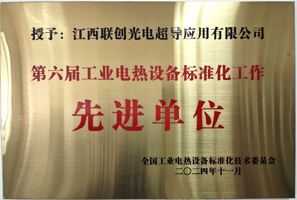 (左一为我司首席科学家戴少涛) 全国工业电热设备标准化技术委员会是由中国机械工业联合会筹建,中国电器工业协会进行业务指导的组织,负责全国工业电热设备等专业领域标准化工作。此次荣获“第六届工业电热设备标准化工作先进单位”称号,是全国工业电热设备标准化技术委员会对我司标准化建设工作的认可,也是我司在国家标准化建设工作中的重要成果。下一步,我司将在全国工业电热设备标准化技术委员会的指导下,持续投身行业标准化建设,助力行业有序、高质发展。